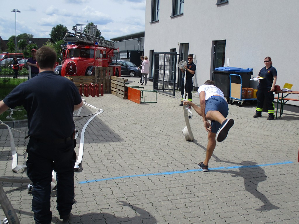Die rund achtzig Kilometer lange Ausfahrt führt in einer großen Runde über Duisburg, Kamp-Lintfort und Rheinberg wieder zurück nach Oberhausen. Unterwegs waren wie immer ein reichhaltiger Fragenkatalog abzuarbeiten, sowie einige Sonderprüfungen zu absolvieren. Besonders viel Spaß hatten alle Teams bei einer Sonderprüfung auf dem Gelände der Feuerwehr. Dort mussten mit Löschschläuche gekegelt werden. Gar nicht so einfach, die Schläuche mit Schwung auszurollen und sie ins Zielfeld zu steuern…
